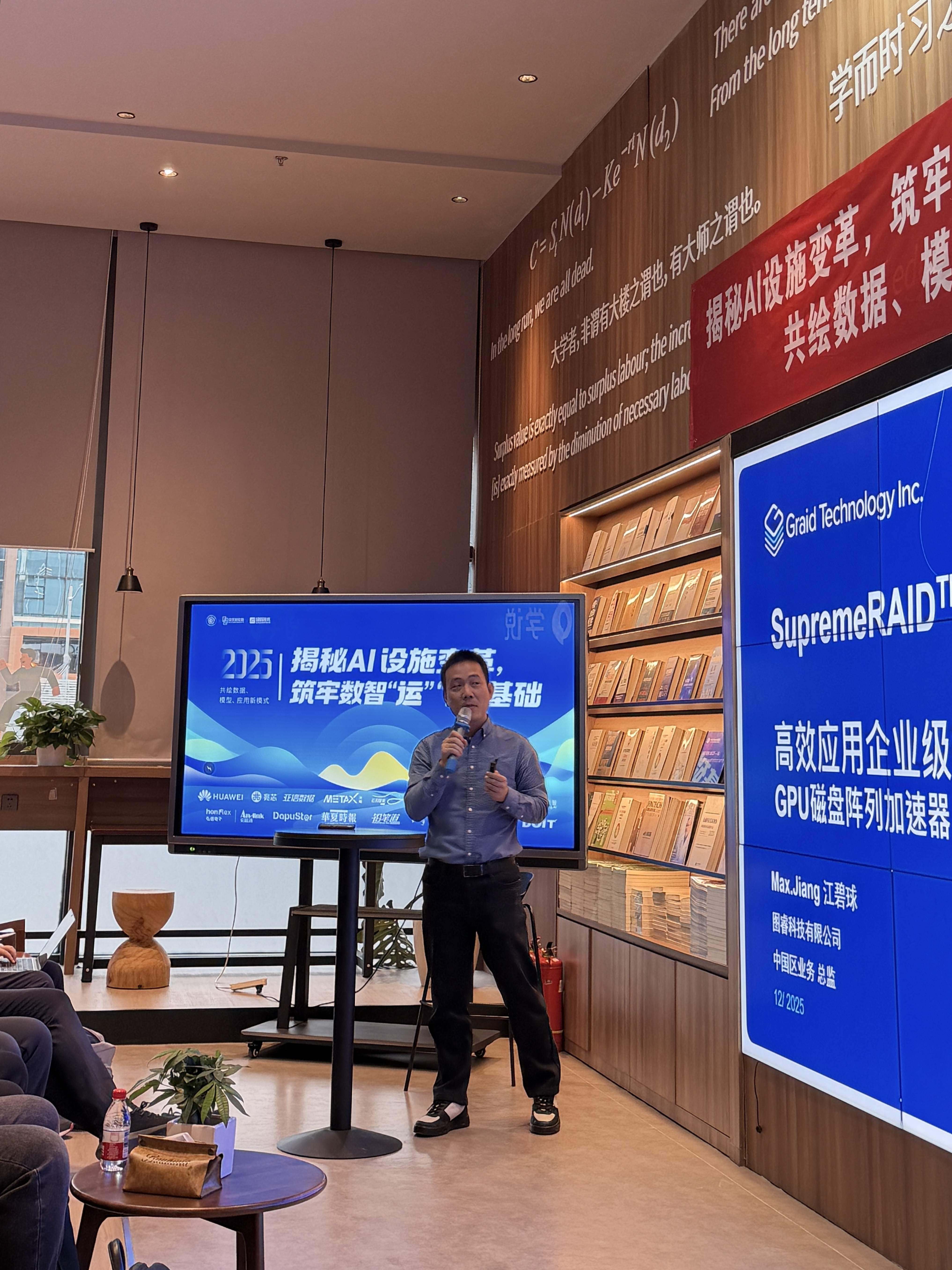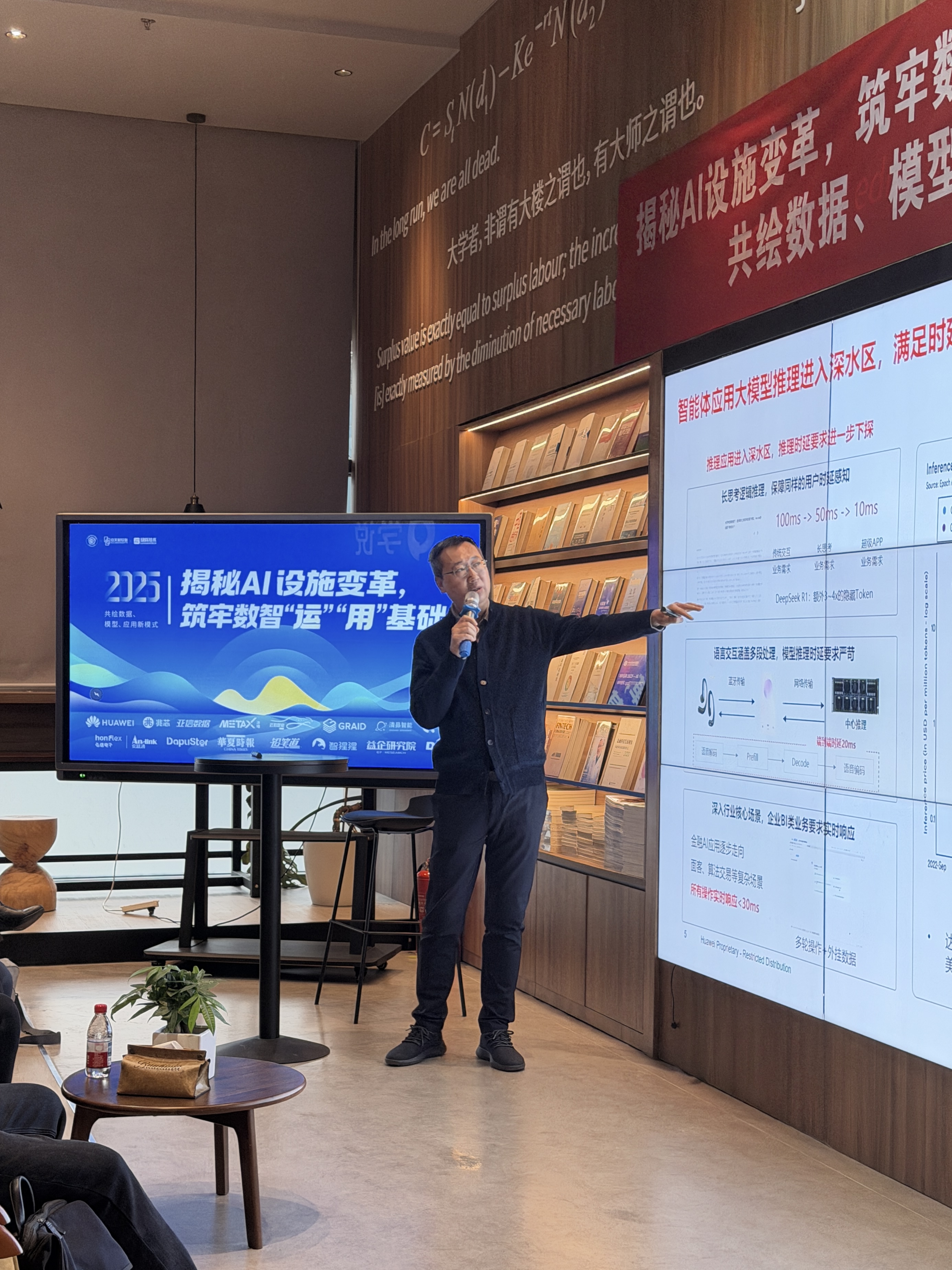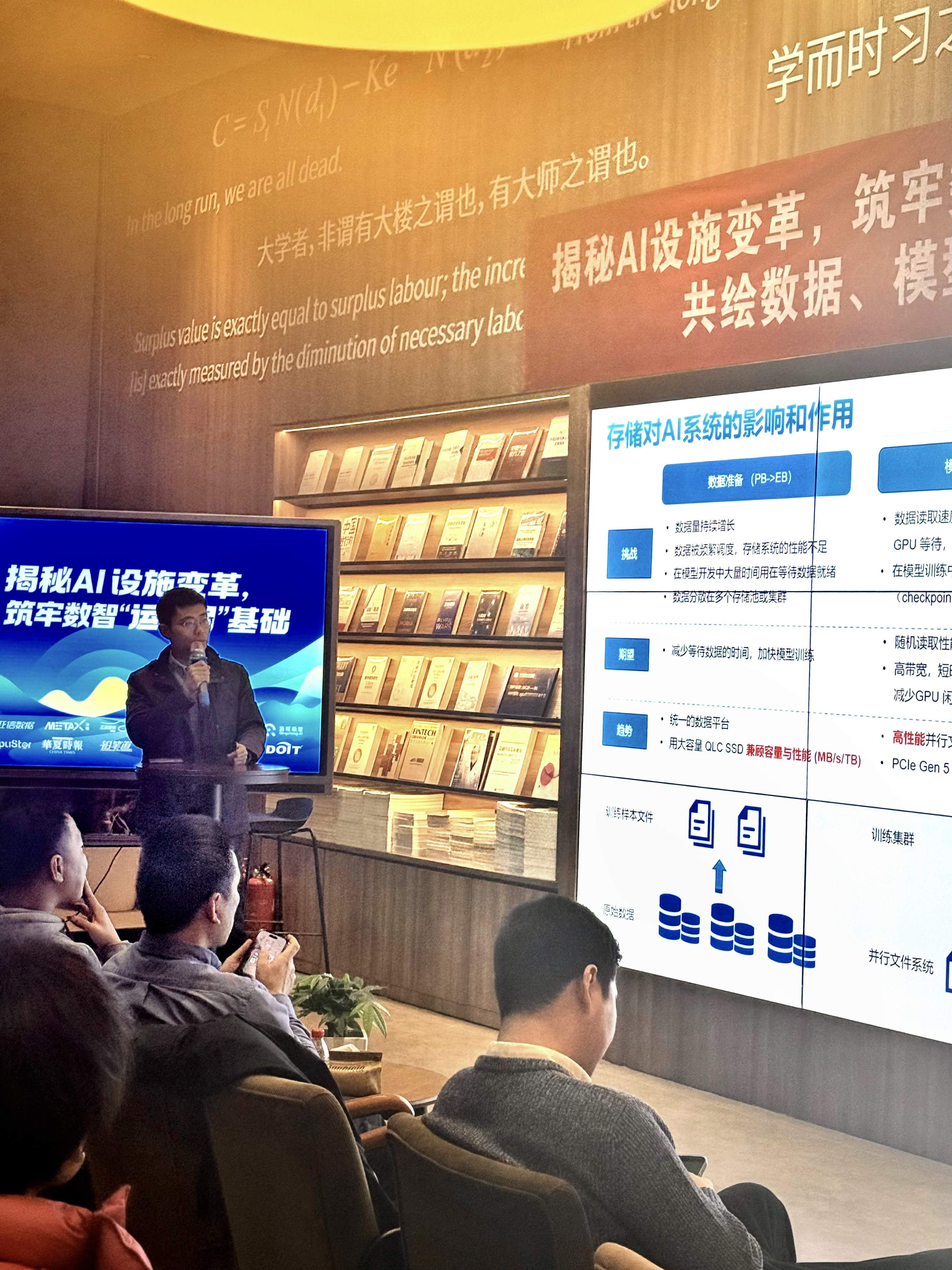 在主题分享环节,来自华为、兆芯、亚信数据、安联通、图睿科技(Graid)、清昴智能、云豹智能、清程极智、大普微电子等企业的十余位技术专家与业务负责人发表了演讲。内容涵盖AI存储与推理加速、国产算力底座、算力调度与管理、高性能网络实践、存储性能优化、软硬协同、DPU技术应用、算力服务化以及存算协同等多个前沿领域,多维度剖析了AI基础设施的技术趋势与实践路径。